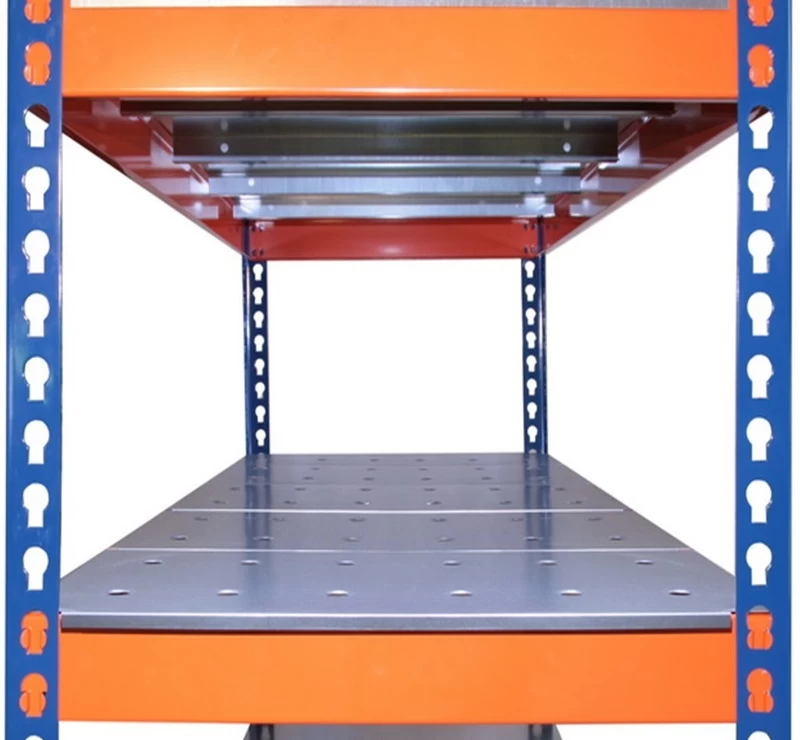 - Ярусный уровень представляет собой наборный настил из перфорированных полок, изготовленных из оцинкованной стали повышенной прочности. Полки укладываются на каркас из гнутого С-образного металлического профиля.